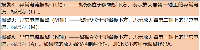 步驟3:報(bào)警8,9和A都是同樣的問題。但是,不同的警報(bào)識(shí)別警報(bào)存在于哪個(gè)放大器軸上。