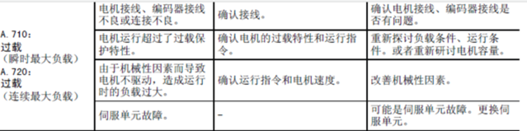 安川伺服電機(jī)SGM7G-1AAFC6C報(bào)警710意思是:瞬時最大負(fù)載過載。