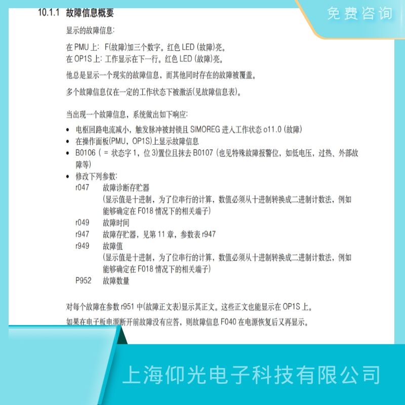 上海仰光電子科技有限公司成立于2011年,是一家專業(yè)從事工業(yè)自動化設(shè)備維修、維護(hù)及電氣系統(tǒng)維修改造的高科技公司。主要針對西門子(SIEMENS) ABB維修、包米勒維修,力士樂維修,發(fā)那科維修,貝加萊維修,AB維修,科爾摩根維修,倍福維修,富士維修,安川維修,三菱維修,海德漢維修,穆格維修,發(fā)格維修,普洛菲斯,路斯特維修,倫茨維修,斯德博維修,寶德維修,NUM維修,SEW維修,施耐德(Schneider)等品牌的驅(qū)動器,變頻器、伺服電機、直流調(diào)速器、軟啟動器、工控機、PLC、觸摸屏、數(shù)控系統(tǒng)、單片機、電路板等各種進(jìn)口工業(yè)儀器設(shè)備,服務(wù)中心配備了百萬備品備件以及完備的診斷檢測儀器和軟件診斷技術(shù),擁有一支技術(shù)精湛、經(jīng)驗豐富的技術(shù)團隊。上海仰光電子科技有限公司維修免費全國,提供免費檢測,免費咨詢,同一故障六個月質(zhì)保,修不好不收費用,如有任何故障可隨時聯(lián)系我們,上海仰光電子科技有限公司工程部溫馨提示:如果設(shè)備出現(xiàn)報警或者損壞,不是專業(yè)技術(shù)人員請勿私自拆卸,以防帶來安全隱患以及給設(shè)備造成二次傷害.上海仰光電子-您身邊的設(shè)備維修維護(hù)專員。